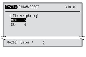 但是,當設置的機器人為 YK120XG、YK150XG、YK180XG、YK220X 時,以 0.1kg 為單位設置。