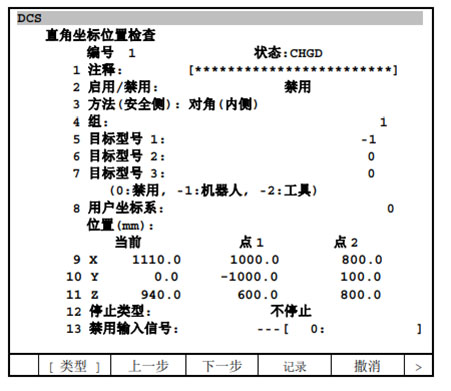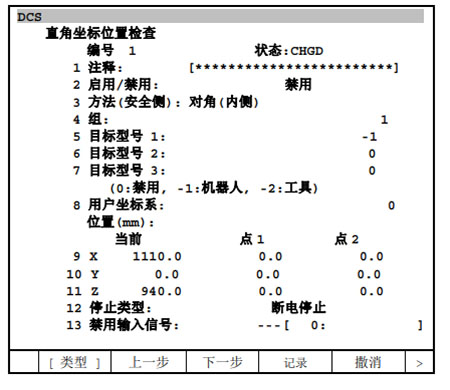 FANUC機器人DCS直角坐標位置檢查詳情如下: