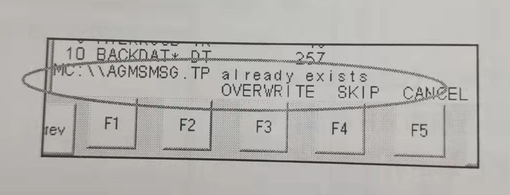 注意:若控制柜 SRAM 中有同名文件存在,則第七步后回顯示下圖畫面: