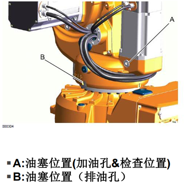 注:進入機器人工作區(qū)域前關閉所有連接到機器人的電源,液壓氣壓源.(油塞擰緊扭矩10NM)