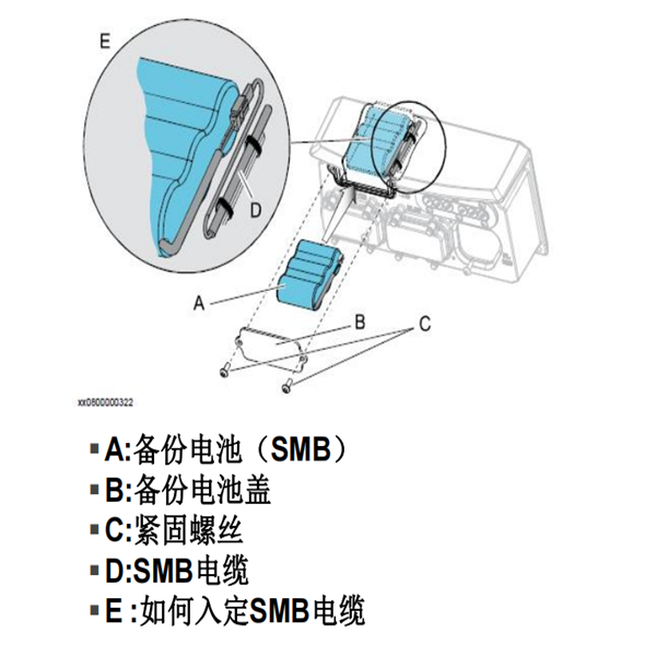 備用電池更換(如下圖),注:進入機器人工作區(qū)域前關閉所有連接到機器人的電源,液壓氣壓源.