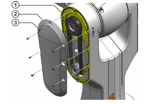 • 擰出皮帶側(cè)蓋板 A3 上的 9 個(gè)內(nèi)六角螺栓 M4x8-8.8